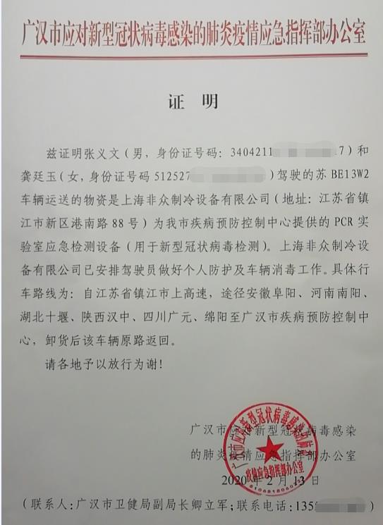 眾有實業(yè)旗下上海非眾制冷設(shè)備有限公司為四川省廣漢市疾病預(yù)防控制中心PCR實驗室(用于新型冠狀病毒肺炎檢測)提供的凈化型恒溫恒濕空調(diào)設(shè)備已經(jīng)在最短的時間內(nèi)以最快的專車運輸?shù)男问剿椭良部刂行模糜谝痪€疫情防控。