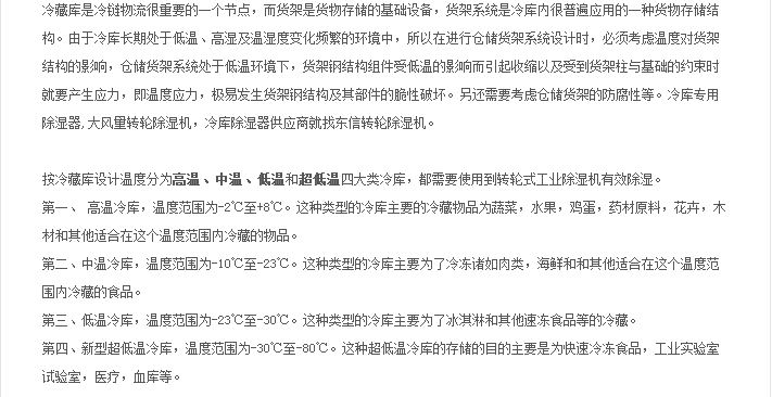 常規(guī)除濕機和管道除濕機均有升溫型、調溫型、降溫型三種功能類型,其中升溫除濕機主要用于除濕,無制冷功能,故適用于無溫度要求的除濕場所;調溫除濕機集除濕、制冷功能于一身,且制冷能力可調,故特別適用于熱負荷變化較大的除濕場所。降溫除濕機在除濕的同時有制冷功能,但制冷能力不可調,故適用于熱負荷較大,對相對濕度無要求的除濕場合。